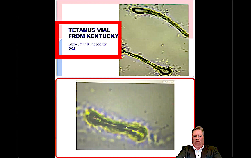 James Grundvig: So Hexa-X logo is in the middle. So I want to tell you the three main telecom, computer companies that are involved in this directly, is Ericsson Telecom out of Sweden, Nokia out of Finland, Bell Labs American, which is also based in Europe. We have American money going into this. We have Chinese money going into this. You know this has got to be good! And I guess the only good news out of this in the past month has been when DOGE and Trump destroyed USAID, USAID’s money, which was only a portion, not all of it, right? Some is coming from the Military, has been completely stopped going into Hex-X. So Hexa-X is getting a little poorer for the rest of the year, but I’m sure they’re going to continue on. Dr Madej, go ahead. Dr Carrie Madej: I don’t like the name. Just saying it’s interesting. “Hex-X”, you know, “Hexa”, it’s like putting, it’s a occultic, putting a curse. “Hex”. James Grundvig: Oh, absolutely! Dr Carrie Madej: Everything is about a spell, a curse. But music, like you said, I want to go back to that. Music is the most powerful form that’s been used against us but if we just realize that we having our own organic music, again is much more powerful than all of that. James Grundvig: Yes. Now, you sent me this slide. Tetanus vial from Kentucky, a GSK booster 2023. What are we looking at?