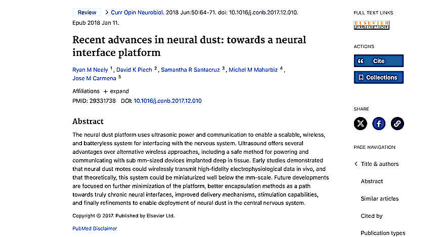 Let me read this. “Recent advances of Neural Dust Towards a Neural Interface Platform”.