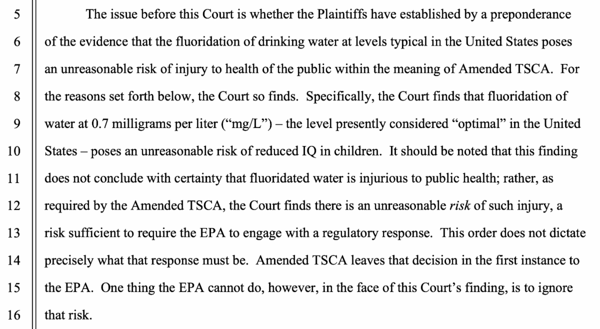 A federal judge has just ordered the U.S. Environmental Protection Agency (EPA) to strengthen fluoride regulations in drinking water, acknowledging it as an “unreasonable risk” to children’s developing brains. This decision marks a significant step forward in the fight to protect our health and the well-being of future generations.